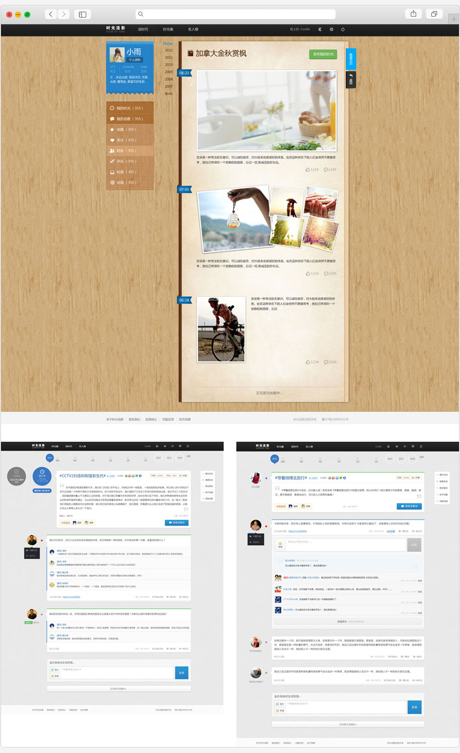 - 作為重點打造的互動交流平臺,作用于記錄時光,分享經歷,不僅以時光軸架起專家和網民的互動討論,也生動化構建了個人的圖文記錄平臺,每個人都可以有自己的傳記并和出版集團的資源優勢結合可以線下出版。