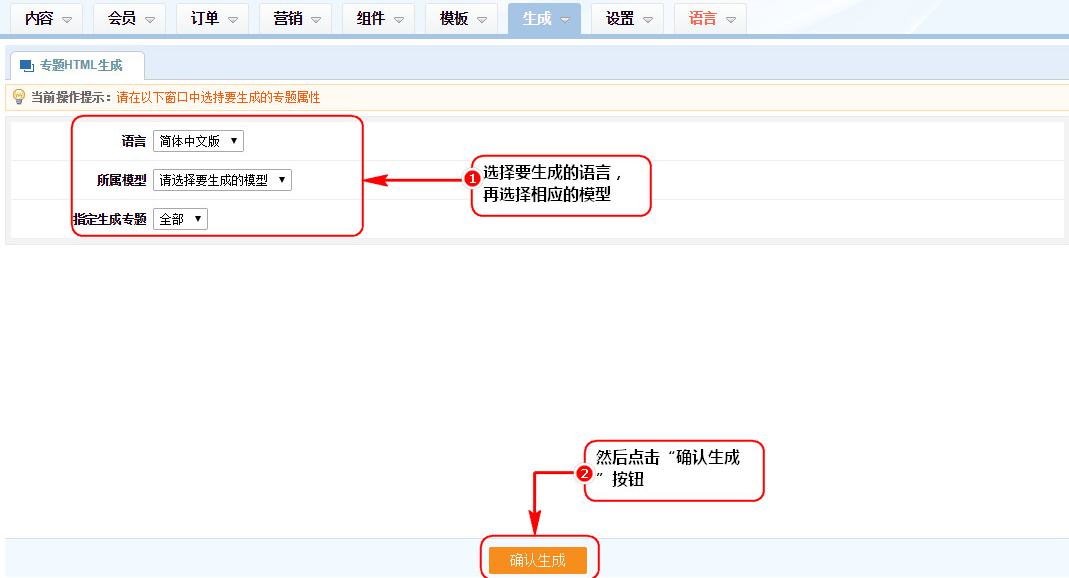 具體操作方法為:選擇要生成的語言,再選擇相應的模型,然后點擊“確認生成”按鈕。