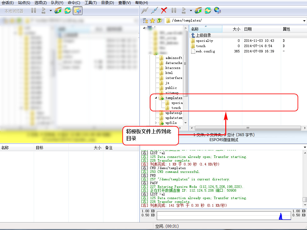 1、使用FTP軟件或其它方式將做好的網(wǎng)站模板文件上傳致網(wǎng)站的templates目錄中,主題文件夾名稱必須為英文或者數(shù)字;