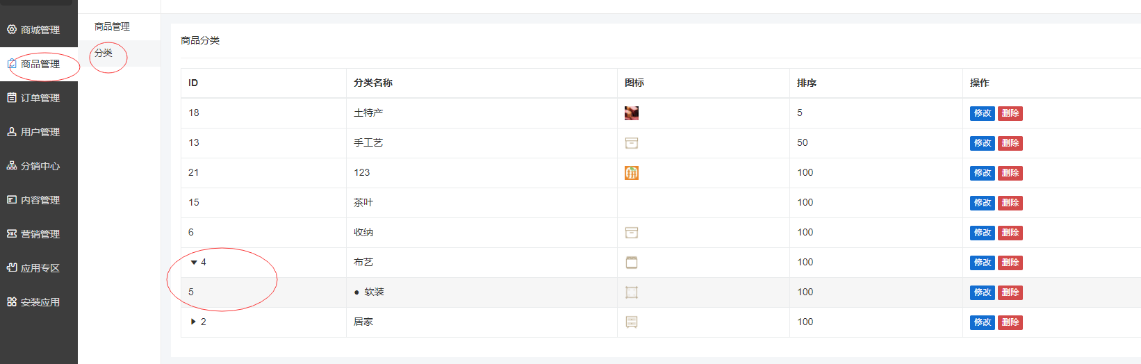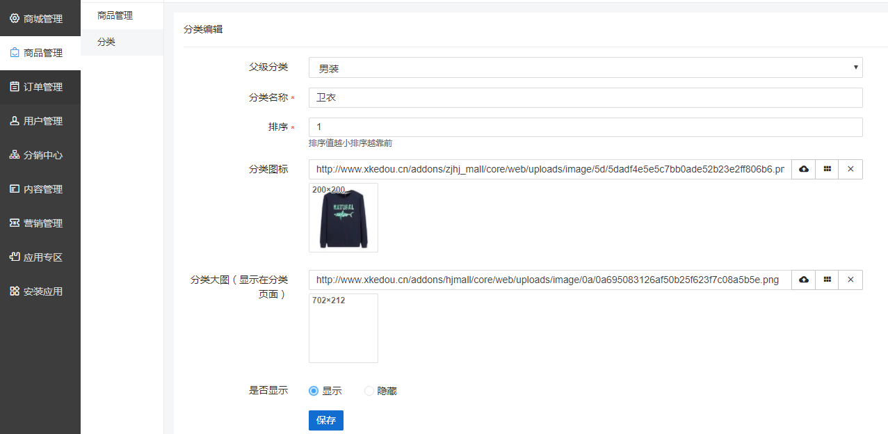 分類支持一級和二級分類分類可折疊