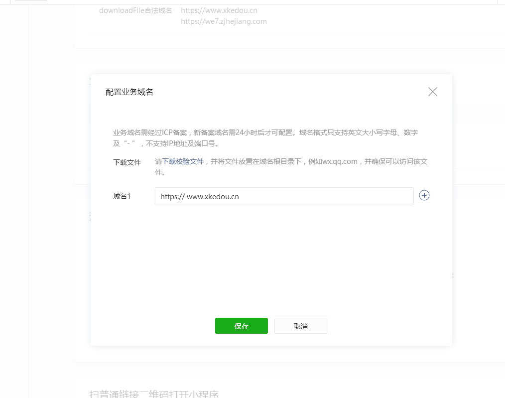2.小程序后臺(tái),服務(wù)器域名那4個(gè)域名,是否配置了.站點(diǎn)的域名