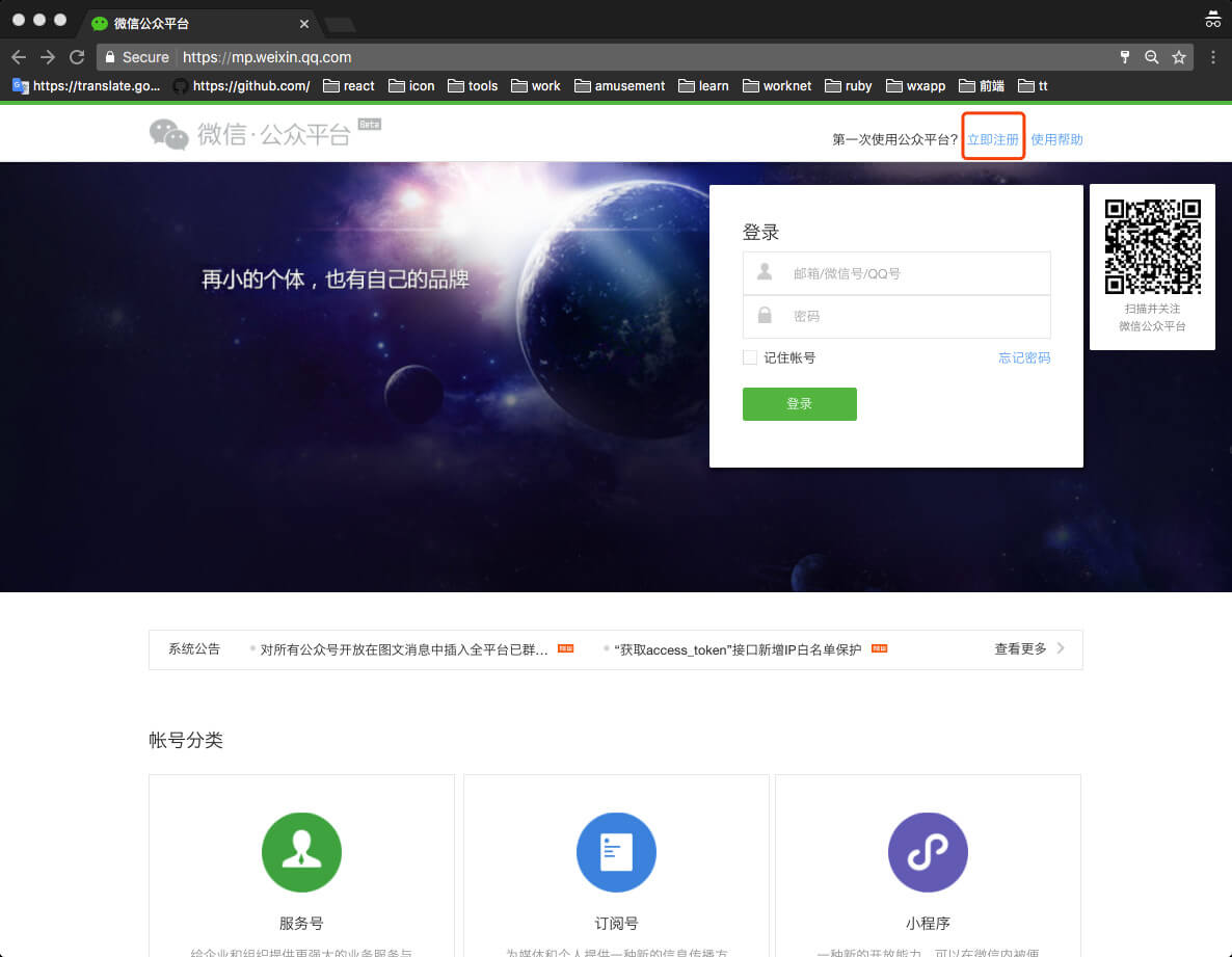如果你已有企業類型認證的公眾號,可以快捷開通小程序,無需再次提交主體材料,無需支付300元的認證費用。步驟:登錄公眾號后臺 -> 小程序 -> 小程序管理 -> 快速注冊并認證小程序 公眾號快速注冊小程序 進入后請根據微信指引完成小程序注冊進入后請根據微信指引完成小程序注冊